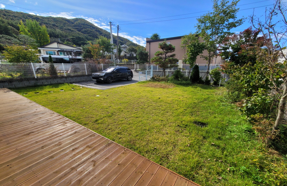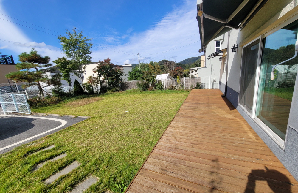 | 상태 | 6번 국도와 흑천이 가까운 시골마을 평탄지에 조성된 아담한 전원단지내 주택입니다. 1층 (23.5평) : 환한 거실과 주방, 방2, 욕실 2 2층 (20평) : 넓은 거실과 방2, 욕실 1, 아담한 테라스가 있습니다. 잔디정원과 정원수가 식재되어 있습니다. | ||