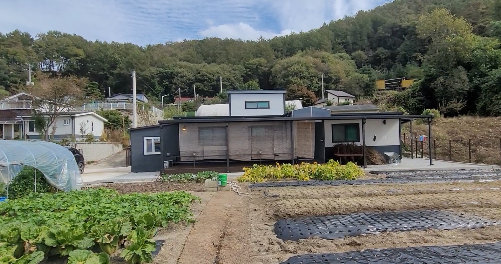 | 상태 | 2차선 도로에서 도보가능한 소규모 전원단지내 주말주택입니다. 1층 주택 (26평) : 거실, 주방, 방 2, 욕실 2 그리고 다락방 (약 4평)이 있습니다. 주택외부에 비가림시설 (약 10평) + 창고(약 3평) 가 있어서 매우 유용합니다. 정원의 대부분을 텃밭으로 이용중입니다. |