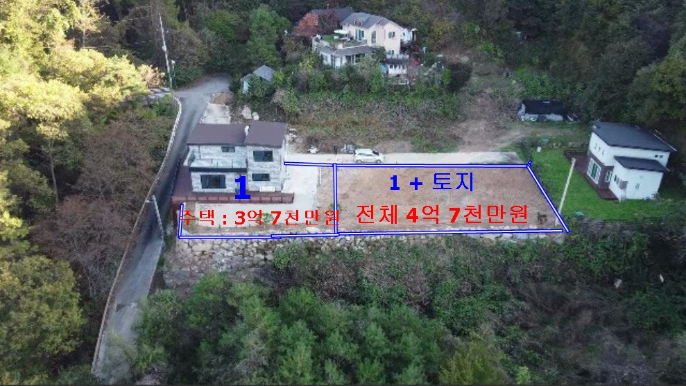 1. 분할매매 : 대지 (139평) + 도로지분(11평) + 주택 31평 +다락방 10평(써비스) : 매매가 3억 7천만원 |
