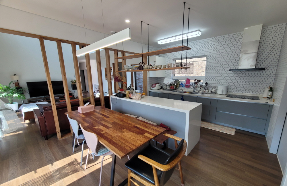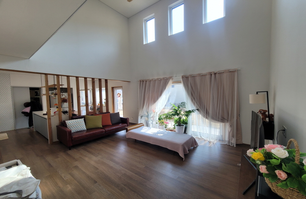1층(24.6평) : 층고높고 밝고 넓은 거실과 주방, 방 1, 욕실 1