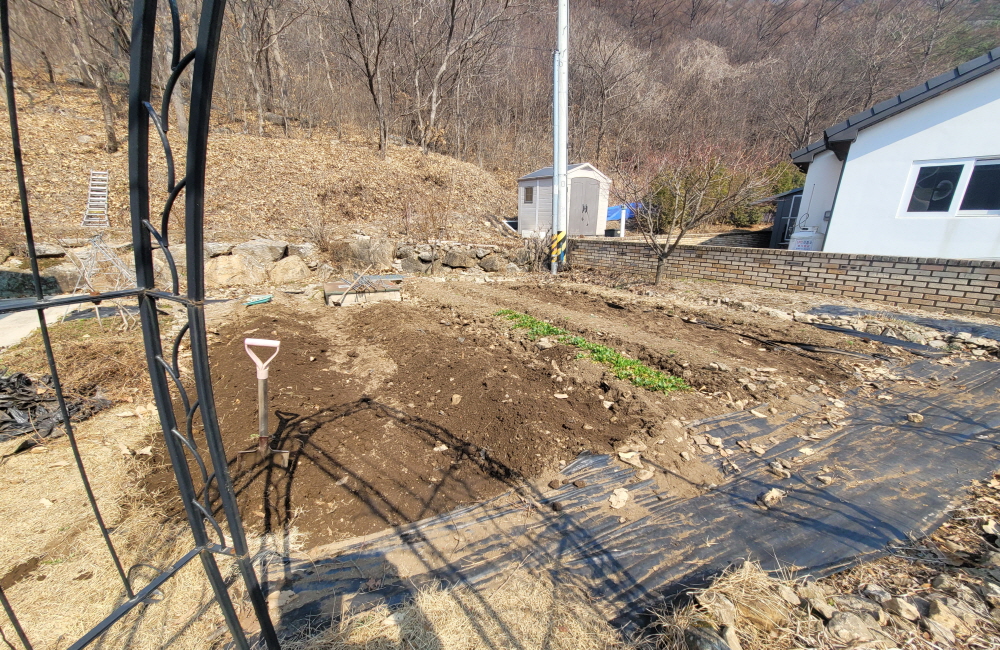 정원에는 각종 꽃나무와 정원수, 적당히 넓은 텃밭이 있습니다.
