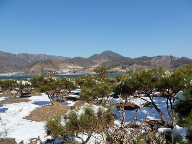 끝없이 펼쳐진 아름다운 청평호수의 환상적인 강조망을