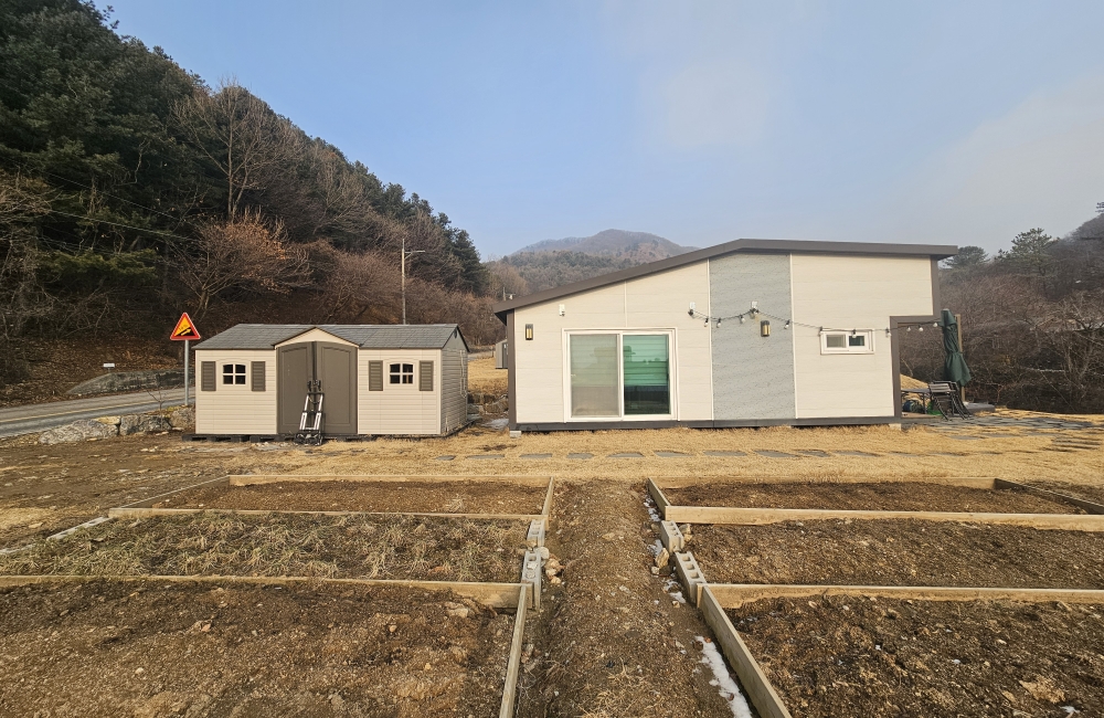 2차선 지방도와 실개천에 접한 체류형쉼터(농막) 매매
